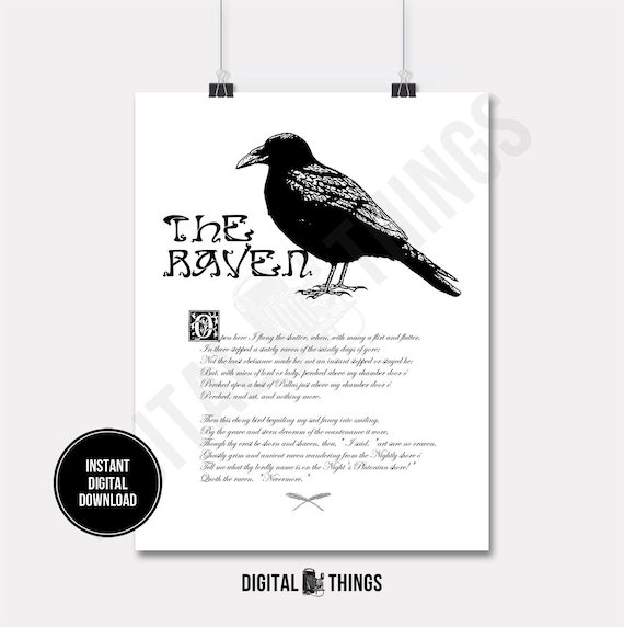 Halloween Edgar Allan Poe The Raven Bird Poem Wall Decor Art Etsy